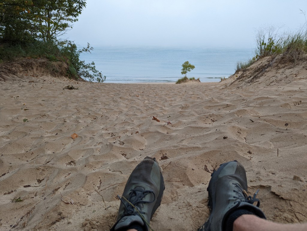 About an hour after leaving the house I ended up with a beautiful view of Lake Michigan and feeling MUCH better about myself and my life. Later in the day I ended up with more energy to give to people and problem-solving. This evening I ended up watching my daughter’s cheer practice and loving my life. Like an avalanche of health and positivity, a good day started with the small but intentional act of putting on the right gear.